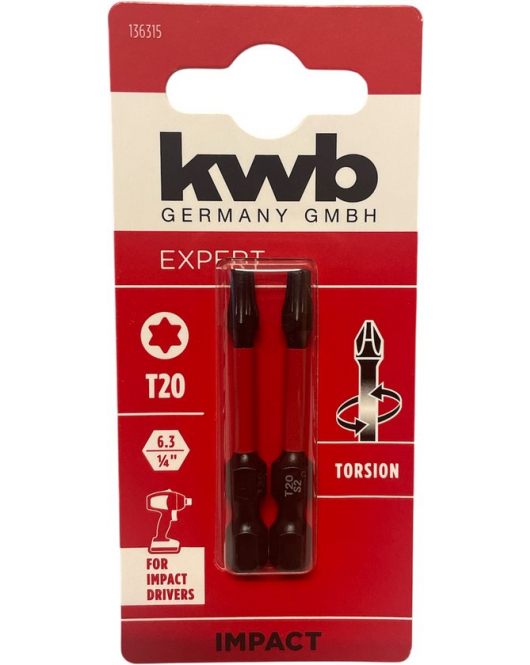 Deze verpakking bevat 2 torsion bitjes van 50 mm met een 1/4" aansluiting en T20-aandrijving, gemaakt van S2 staal. Geschikt voor accuboormachines en impact drivers, en voor het gebruiken met T20-schroeven.