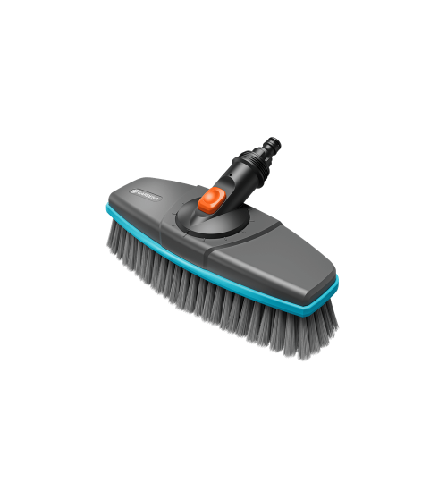 De GARDENA Cleansystem steelborstel zacht maakt indruk met zijn zachte reiniging van grotere oppervlakken zoals kassen. Grondige oppervlaktereiniging in een handomdraai. De GARDENA steelborstel soft is het ideale reinigingsgereedschap voor allerlei reinigingsklussen op grote oppervlakken rondom het huis. Bevestig gewoon een Cleansystem steel aan de tuinslang en sluit de borstel aan. Je kunt aan de slag. Het is heel gemakkelijk te gebruiken en de resultaten zijn indrukwekkend. Zacht reinigen zonder schade. Het belangrijkste kenmerk van de borstel met zachte steel is zijn zachtheid. Dankzij de speciaal ontwikkelde zachte borstelharen maakt hij een zachte en grondige reiniging mogelijk. Hij verwijdert moeiteloos stof, vuil en aanslag van gevoelige oppervlakken. Draaibare borstelkop. Dankzij de borstelkop, die in stappen van 30° rondom kan worden gedraaid, kan de borstel moeiteloos worden gebruikt. Hij kan dus ideaal worden aangepast aan het te reinigen oppervlak. Uitgerust met een strip van zachte kunststof rondom laat hij geen krassen achter. Optimaal samenspel met de GARDENA Cleansystem stelen en reinigingsstelen. In combinatie met de waterdoorlatende stelen (art. 18000, 18002, 18804) is bijzonder efficiënt gebruik op gevoelige oppervlakken mogelijk. Het gebruik van GARDENA Shampoo (art. 1680) verhoogt de efficiëntie van de steelborstel nog verder. Betrouwbare kwaliteit. De zachte steelborstel wordt in Duitsland gemaakt en overtuigt door de hoge kwaliteit en het duurzame materiaal. De borstel moet worden opgeborgen met de borstelharen naar boven, zodat hij jarenlang optimaal blijft reinigen. GARDENA biedt 5 jaar garantie op het product na registratie op gardena.com/registration binnen 3 maanden na aankoop.