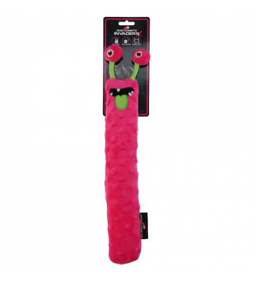 Deze buitenaardse wezens nemen samen met de trouwste viervoeters de wereld over! Deze knuffelige werpstokken zijn gevuld met een sponsvulling, wat ze zwaarder en dichter maakt dan standaard hondenspeeltjes. Het knisperende materiaal aan de binnenzijde en de pieper zorgen voor extra stimulans tijdens het spelen en moedigen de hond aan om zijn tanden in het speeltje te zetten. De Invaders zijn perfect om binnen mee te spelen, lekker mee te knuffelen en trek- en apporteerspelletjes te doen. Elke Invader heeft een unieke gezichtsuitdrukking en persoonlijkheid.