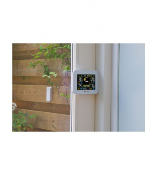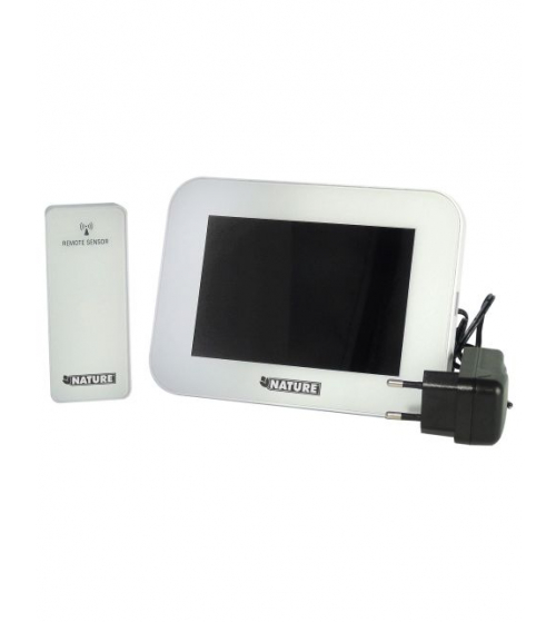 Digitaal weerstation van Nature met frame van wit ABS. Meet de binnen- en buitentemperatuur, de luchtvochtigheid binnen en buiten en de barometerdruk. Het weerstation geeft ook de plaatselijke weersvooruitzichten aan de hand van 6 symbolen (zonnig, deels bewolkt, bewolkt, regen, onweer, sneeuw). Daarnaast worden de datum en tijd weergegeven en is er een agenda met alarmfunctie. Het product bestaat uit het basisstation, H 12,5 x 17,5 x 2,5 cm (H x B x D) waarop alle buiten- en binnenwaarden worden weergegeven en een draadloze sensor die de meetwaarden van buiten doorgeeft. Alle informatie is in één oogopslag op het weerstation te zien. Het weerstation kan neergezet of aan de wand bevestigd worden. Maximale afstand tussen het weerstation en de sensor: 60 m (buiten, vrij veld) Aansluiting op het stopcontact of batterijvoeding, 3x AAA voor het weerstation en 2x AAA voor de sensor (batterijen niet meegeleverd).