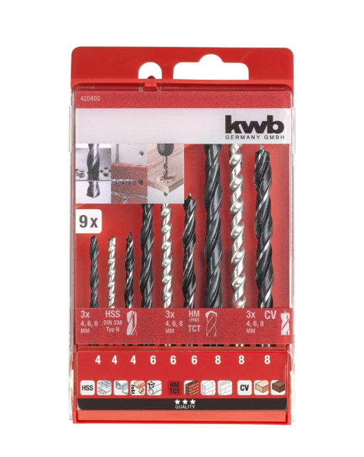 kwb Combi-borenset, 9-delig -- Steen- en houtboren HSS en HM