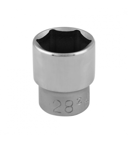 aansluiten op een ratel van 1/2". De maat van de dop is 28 mm. De dop is gemaakt van chroom vanadium staal.