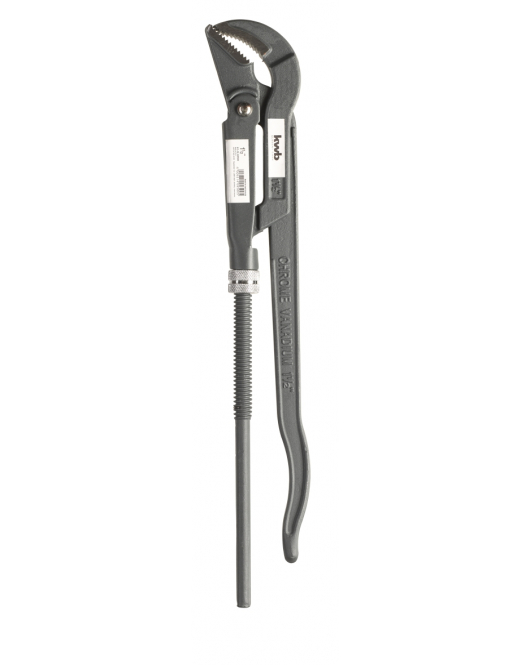 kwb Gebogen pijptang -- CV-staal, gesmeed, oliegehard, bek op 45°, gelakt, Zweeds model, vertanding tegen de draairichting, T-profielgreep, stelmoer die niet verloren kan raken, bek blank geslepen