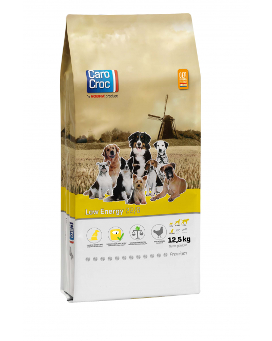 CaroCroc Low Energy is een brok voor volwassen honden met relatief weinig lichamelijke inspanning (minder dan één uur beweging per dag), honden die last hebben van of neigen naar overgewicht (bijvoorbeeld Labrador en Golden Retriever) of gecastreerd/gesteriliseerd zijn.