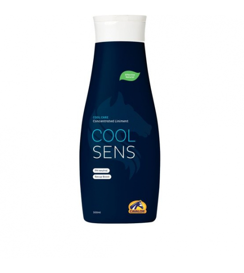 De Cavalor CoolSens is een geconcentreerde liniment die een mengsel van essentiële oliën bevat om het lichaam, de spieren en de benen van de paarden te wassen, verfrissen en te koelen.