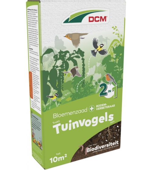 DCM Bloemenmengsel Tuinvogels is een mengsel van meer dan 20 verschillende eenjarige en meerjarige bloemensoorten, zoals kattenstaartamarant, Mexicaanse zonnebloem, gierst, bosliefje, saffloer, tagetes, etc. met de organische bodemverbeteraar DCM Vivisol®. De bloemenzaden in dit kant-en-klare mengsel zijn speciaal geselecteerd om tuinvogels zoals mezen, vinken, putters en grasmussen aan te trekken in je tuin en ze ook van voedsel te voorzien. De toegevoegde bodemverbeteraar stimuleert het bodemleven, wat zorgt voor gezondere planten. Met dit bloemenmengsel geniet je de hele zomer lang van een weelderige bloemenpracht en draag je bij tot meer biodiversiteit boven en onder de grond. Standplaats: zon tot half schaduw. Hoogte: 40 tot 70 cm. Geschikt voor alle gronden. Dosering: +/- 50 gram voor 1 m².