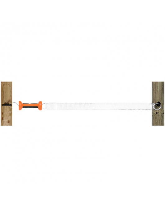 Altijd passende goed zichtbare afsluiting voor uw dam. Een luxe complete uitvoering: met witte veer en oranje poortgreep voor nog betere zichtbaarheid. Maximale breedte 5m. Niet geschikt voor paarden.