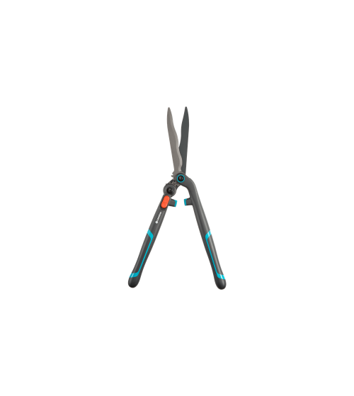 Met de gepatenteerde 2-in-1-functie van de EnergyCut van GARDENA creëer je extra kracht wanneer je het nodig hebt. Met slechts één druk op de knop verander je de snijmodus en activeer je extra kracht! De vrije keuze van de snijmodus betekent dat je altijd alles onder controle hebt tijdens het snoeien. Gebruik de normale modus voor snel, zeer efficiënt snoeien en de extra kracht voor het doorknippen van dikkere takken. De gekartelde mesranden zorgen voor meer efficiëntie bij gebruik op grotere oppervlakken. Bovendien zijn de messen voorzien van antikleefcoating, wat resulteert in verminderde wrijving om moeiteloos te snoeien. De EnergyCut maakt indruk vanuit elk perspectief: zelfs de handgrepen zijn interessant. De ErgoTec-technologie staat voor ergonomisch gevormde houten handgrepen. De heggenschaar ligt prettig in de hand en de zachte buffer biedt een geweldige demping die zorgt voor minder belasting van polsen en armen. De EnergyCut is precies wat je nodig hebt voor krachtig maar ontspannen snoeien!