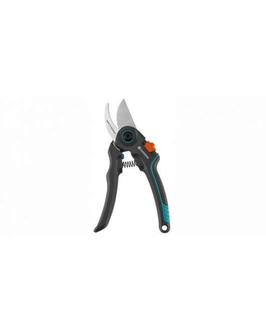De innovatieve ExpertCut-snoeischaar van GARDENA is een uitstekende snoeischaar voor hobbytuinierders. Hecht u veel belang aan nauwkeurig en grondig werk, vakmanschap van hoge kwaliteit en robuuste gereedschappen? De ExpertCut zal niet alleen indruk op u maken vanwege zijn uitzonderlijk scherpe en slijtvaste roestvrijstalen bladen. Dankzij een extra verhardingsfase in het fabricageproces is het blad kerngehard en heeft het een hardheid van maximaal 60 HRC. Met een maximale snoeidiameter van 22 mm kunt u eenvoudig en zeer nauwkeurig talloze planten en takken snoeien. Vooral voor langer gebruik in de tuin voldoet de tuinsnoeischaar qua ergonomie en comfort aan alle verwachtingen. Met een gewicht van ongeveer 160 g is de schaar aangenaam licht en dankzij de verstelbare handvatbreedte zeer geschikt voor kleine en middelgrote handen. De schaar kan zelfs worden gebruikt door links- als rechtshandige mensen. Het handige vergrendelingsmechanisme, dat met één hand kan worden bediend, zorgt voor meer comfort en veiligheid tijdens het werken. Dit betekent dat de bladen eenvoudig kunnen worden gesloten en geopend. Na gebruik kan de ExpertCut-snoeischaar van GARDENA moeiteloos worden schoongemaakt. De gepatenteerde sapafvoer in het roestvrijstalen blad is ook erg handig tijdens het snoeien. Hierdoor blijft het blad langer beschermd tegen kleverig plantensap. De ExpertCut-snoeischaar wordt gemaakt in Duitsland. GARDENA geeft een uitgebreide garantie van 35 jaar op deze schaar van Duitse kwaliteit, wat de extreme robuustheid van de ExpertCut benadrukt.