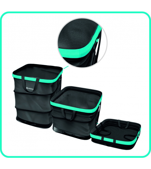 De duurzame en ruimtebesparende GARDENA tuinafvalzak, is de ideale groenzak voor prettig tuinieren. Pop-up, rechthoekig, maat L. Rechthoekige vorm De afvalzak is rechthoekig zodat je de tuinzak op zijn kant kunt leggen zonder dat hij wegrolt. Bukken hoeft niet meer, want heel ergonomisch en rugvriendelijk hark je het tuinafval in de zak. Duurzame, gemakkelijk draagbare tuinzak Zelfs als je de tuinafvalzak over de grond sleept, zorgt de versterkte bodem voor een lange levensduur. Bovendien heeft de zak 4 draaglussen om het tuinafval makkelijk mee te nemen, zonder veel tillen. In hoogte verstelbaar Je kunt de tuinzak op 3 hoogtes instellen. Op 60 cm kun je de zak helemaal vullen en op de middelste hoogte van 45 cm past hij in een lage kofferbak. Om ruimte te besparen vouw je de tuinzak plat op. Gerecycled materiaal Het materiaal van de GARDENA tuinafvalzakken bestaat voor meer dan 70% uit gerecycled plastic, uit huishoudelijk afval. Met langdurige garantie GARDENA biedt 5 jaar garantie op dit product na registratie op gardena.com/registration, binnen 3 maanden na aankoop. Kijk op gardena.com/warranty voor de garantievoorwaarden.
