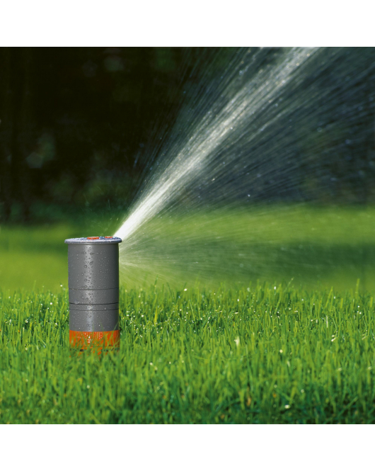 De GARDENA Verzonken turbinesproeier T 200 - als onderdeel van het GARDENA Sprinklersystem - is zeer geschikt voor het besproeien van middelgrote gazons tot 200 m². Waar nodig kan de Verzonken turbinesproeier T 200 worden gecombineerd met de Verzonken turbinesproeiers T 100 en 380 (art. nr. 8201-29 en 8205-29) en de Verzonken zwenksproeier OS 140 (art. nr. 8220). Het bereik is variabel tussen 5 en 8 m voor het afzonderlijke oppervlak instelbaar. De sector die moet worden besproeid kan traploos (zonder gereedschap) op de sproeierkop worden aangepast van 25 tot 360°. Hiermee kunt u kleine sectoren of in een volledige cirkel besproeien. Door de geheugenfunctie gaat de sproeier automatisch terug naar de ingestelde sector, ook als de sproeierkop handmatig is gedraaid. Zo wordt altijd het juiste gebied besproeid. Voor flexibele besproeiing zijn er vier spuitmonden met verschillende toevoersnelheden, die kunnen worden geselecteerd op basis van het te besproeien oppervlak. Dit is vooral belangrijk voor een gelijkmatige besproeiing bij gebruik van meerdere soorten sproeiers en verschillende ingestelde besproeiingsoppervlakken. Het geïntegreerde vuilfilter zorgt voor een ononderbroken werking. Het betrouwbare, zandbestendige turbinetandwiel zorgt voor een lange levensduur. Door de installatie van een Ontwateringsventiel (art. nr. 2760-20) in de leiding is het Sprinklersystem vorstbestendig. Voor aansluiting is er een binnendraad van 1/2" aanwezig.