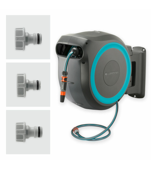 Gebruiksvriendelijke en flexibele bewatering voor kleinere tuinen. Tuinieren is handiger en gemakkelijker dan ooit met de wandslangenbox RollUp S. Deze helpt je tuin netjes en opgeruimd te houden en voorkomt hinderlijk struikelgevaar als gevolg van een rondslingerende slang. De praktische slangopslag is eenvoudig aan de muur van je huis te bevestigen en wordt met een flexibele aansluitslang aangesloten op de kraan. Dankzij de stevige muurbeugel kan de slangenbox meer dan 180° worden gedraaid, zodat je elke hoek van je tuin moeiteloos kunt bereiken. Voor direct gebruik kun je de tuinslang eenvoudig verlengen tot een lengte van maximaal 15 m. De tuinslang wordt automatisch in heel korte intervallen vergrendeld zodra je stopt, wat betekent dat de slang eenvoudig en gemakkelijk te hanteren is. Door lichtjes aan het uiteinde van de slang te trekken, wordt de vergrendeling ontgrendeld en een ingebouwde stalen veer met innovatieve RollControl-technologie zorgt voor soepel en gecontroleerd oprollen. De RollControl beschermt de slangenbox en de omgeving tegen schade als gevolg van het te snel inrollen. Om knikken of knopen in de slang te voorkomen, heeft de box een geïntegreerde slanggeleider. Dankzij de slang- en kraanaansluitingen van het Original GARDENA System kun je eenvoudig en flexibel een verlengstuk of ander compatibel GARDENA element op de slang aansluiten. Je hebt altijd je GARDENA slangopzetstukken bij de hand. Ze kunnen onder de muurbeugel worden bevestigd en daar worden opgeborgen om ruimte te besparen. De GARDENA wandslangenbox is UV- en vorstbestendig en kan het hele jaar door probleemloos aan de muur van het huis bevestigd blijven. Het hoogwaardige materiaal biedt je een lange levensduur en gebruiksgemak zonder onderhoud. Bovendien kan de box niet worden gestolen dankzij de antidiefstalbeveiliging en kan de box alleen door jou van de muur worden verwijderd. Samen met de wandslangenbox ontvang je een muurbeugel, een flexibele aansluitslang, alle benodigde Original GARDENA System en montageonderdelen en een mondstuk met twee verschillende sproeiopties. Dit hoogwaardige product wordt geleverd met een garantie van vijf jaar van GARDENA. Bewatering die altijd gebruiksklaar is dankzij de GARDENA wandslangenbox RollUp S.