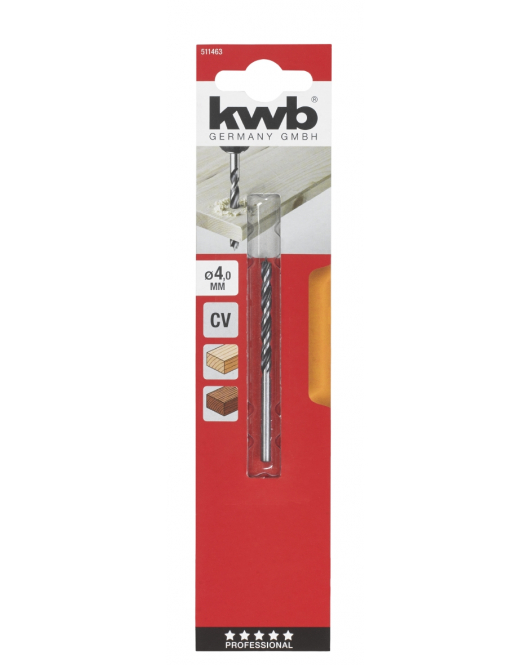 kwb Houtspiraalboren -- Houtspiraalboren, CV-staal, spaanloos gevormd, dubbele spiraal, voor een stabiele en rechte uitloop, kleur zwart, blank geslepen spiralen, met centreerpunt en schoudersnijder, voor precieze en scheurvrije boringen, cilindrische schacht, industriële kwaliteit, voor zacht- en hardhout.
