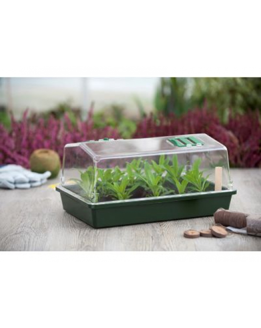 Kweekkas van harde kunststof (spuit-giet), voorzien van een transparante deksel met ventilatieopeningen voor een optimale regeling van de vochtigheidsgraad. Dit maakt een goede balans tussen temperatuur, vocht, lucht en licht mogelijk. Deze balans is zeer belangrijk bij de ontkieming van de zaden. Afmetingen: H 18 x 37,5 x 24 cm.