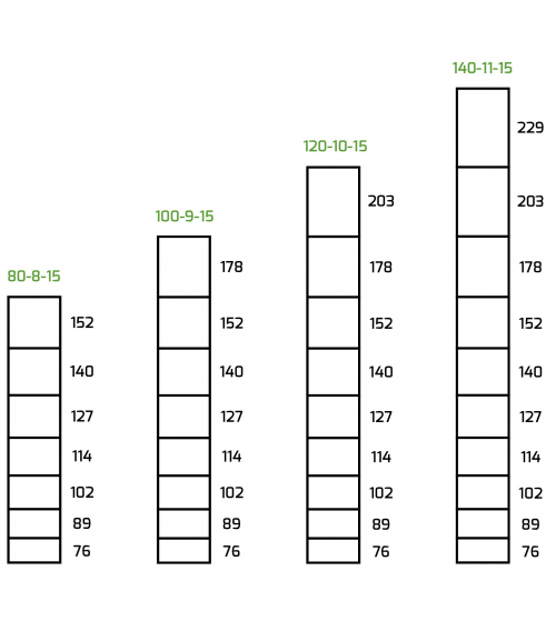 | Opbouw (aantal horizontale draden - afstand vertic | 11-15 |