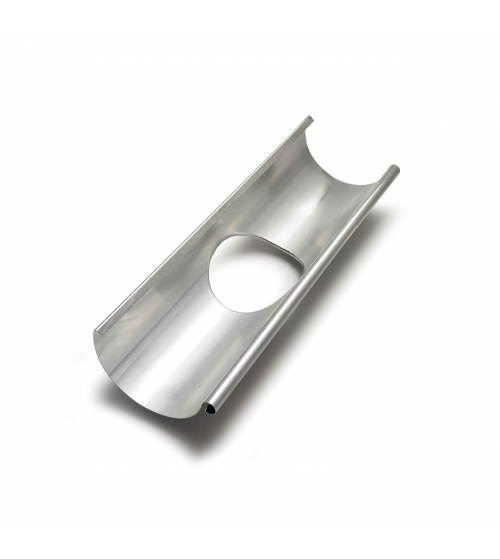 Een trechteruitloop vormt de overgang van de mastgoot naar de hemelwaterafvoerbuis. De trechteruitloop wordt om de goot heen gemonteerd. Met het RHEINZINK aftekensjabloon kan het gat in de goot afgetekend worden.