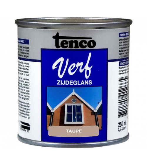 TENCOVERF ZG TAUPE 0,25 L TencoVerf is een zijdeglans universele aflak voor binnen en buiten met een zeer goede dekking en vloei. Geschikt voor het aflakken van hout, staal, non-ferro metalen en diverse kunststoffen.