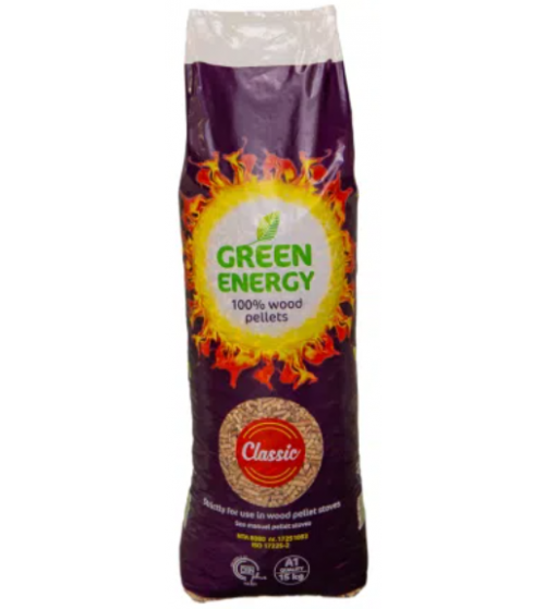 Green Energy Classic houtpellets bevatten een mix van beuken, eiken en naaldhout. Hardhout brandt langzamer maar langer. Hierdoor is de warmteafgifte groter dan bij pellets van 100% naaldhout. Door de langere verbrandingstijd ontstaat bij Green Energy Classic houtpellets ook asgehalte dat iets hoger is dan bij 100% naaldhout. Het vochtgehalte is minder dan 10%.